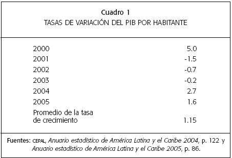 El éxito del comercio exterior mexicano y la mayor apertura de nuestro país estuvieron asociados con reducciones irrisorias en la pobreza y con altos niveles de desigualdad, es decir, el auge comercial con el exterior ha sido insuficiente para avanzar en mitigar de manera importante los niveles de pobreza. Precisamente, en este sentido, "Gerardo Esquivel, investigador de El Colegio de México aseveró que del 50 por ciento de los mexicanos que se encuentran en extrema pobreza, sólo un 1 por ciento logró superarla en los quince años de vigencia del TLCAN. Por su parte, Rafael de Hoyos, consultor del Banco Mundial, concluyó que tomando en cuenta sólo la reducción arancelaria, el TLCAN no tuvo efectos de bienestar significativo en los hogares mexicanos" (Rodríguez, 2007). Por otra parte, la rápida liberalización de las importaciones agrícolas afectó particularmente a los pobres de las zonas rurales, debido, en parte, a los profundos niveles iniciales de desigualdad. Verdaderamente, las tasas de crecimiento del PIB por habitante no avanzaron; por el contrario, no se alcanzó el nivel del año 2000 (véase cuadro 1).