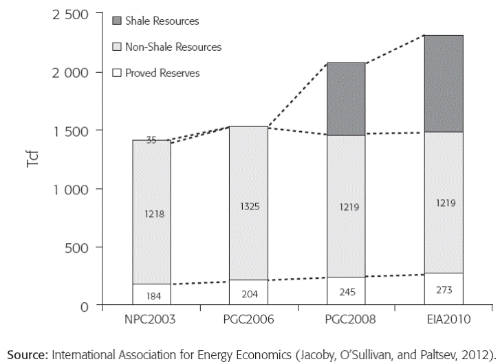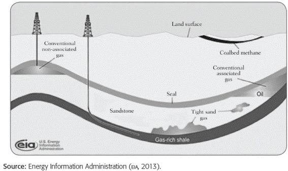 * According to the Energy Information Administration (2013), when considering the market implications of abundant shale resources, it is important to distinguish between a technically recoverable resource and an economically recoverable resource. Technically recoverable resources represent the volumes of oil and natural gas that could be produced with current technology, regardless of oil and natural gas prices and production costs.