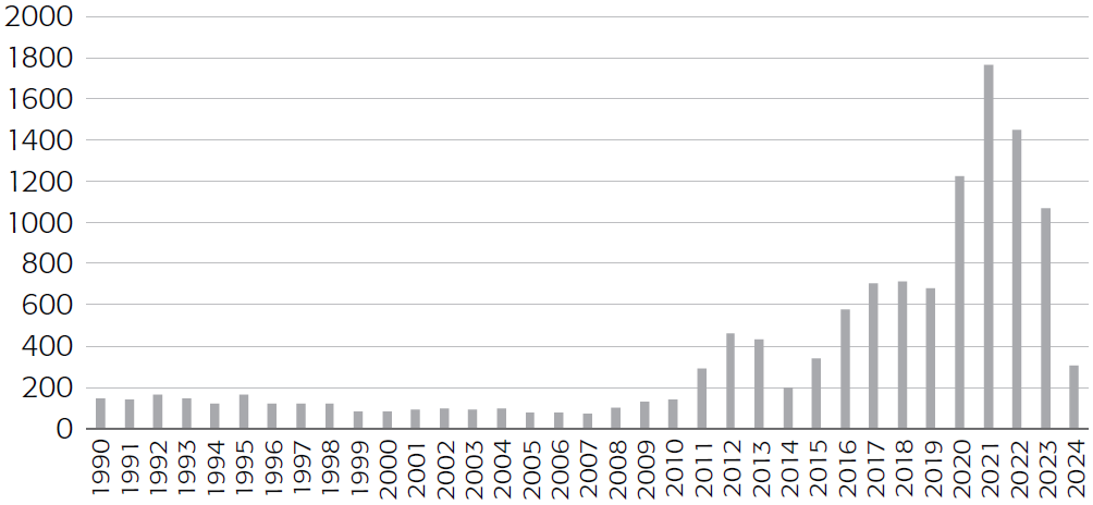 Debido a estos factores, desde el año 2012 se observó un incremento en las defunciones por homicidio en Zacatecas, alcanzando su pico más alto en el año 2021, cuando se registraron un total de 1 767 homicidios (INEGI, 2023). A pesar de que en 2024 disminuyeron un 70 por ciento las cifras de homicidio (véase la gráfica 1), el estado se sigue ubicando como uno de los más violentos en México.