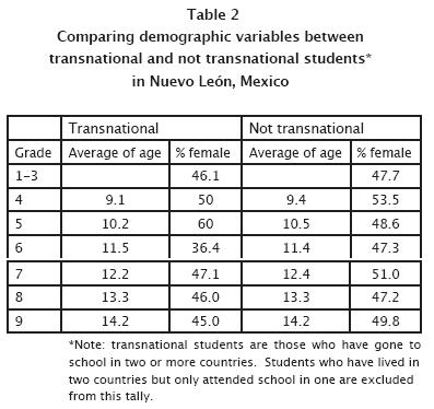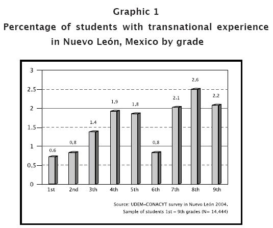 The literature in international migration from Mexico to the U.S. has usually examined labor, juridical, political, and public health dimensions of the phenomena. However, the educational aspect of international migration is becoming a major concern for both countries. This article offers preliminary results from a survey of transnational students coming back from the U.S. to Mexican schools. The database includes information from a representative sample of public and private schools of Nuevo León (1st to 9th grade). It includes estimates of the number of transnational students, their school trajectories, and perspectives on their educational experience in both countries.