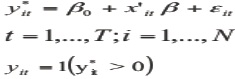 En los modelos probit, y es una variable dependiente latente que toma valores iguales a uno si y* > 0, es decir, si el individuo i posee cierta característica o cualidad y cero en caso contrario, x es un conjunto de variables explicativas que se asumen estrictamente exógenas, lo que implica que la