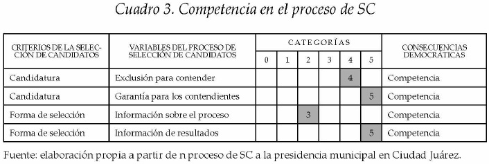 This proposal was based the model's application in the case of Ciudad Juárez bounded in the primary of Presidencia Municipal in 2001/2002-2004 to 2007 process in the three main political forces.