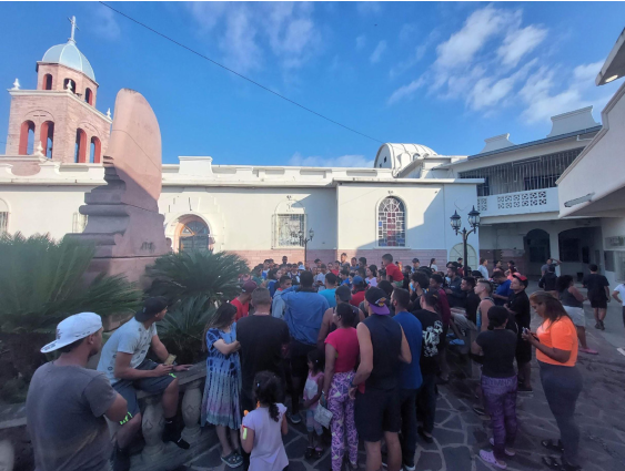 Además de los actores estatales de diferentes niveles y de estos trabajadores del humanitarismo transnacional, en las filas y alrededores de esta ventanilla única y refugio temporal, siempre había trabajadores y voluntarios de órdenes religiosas que mantienen albergues de tránsito para personas migrantes. Estas personas se convirtieron en oasis informativos para los migrantes. Los voluntarios de estas redes de albergues incluso conocían los casos de quienes formaban fila y, al verlos por tercera o cuarta vez, les ofrecían orientaciones específicas y personalizadas.