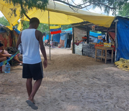 Para diciembre de 2023, las dinámicas en la frontera sur se dividían entre la espera frente a la COMAR y la construcción de campamentos improvisados en los alrededores, conformados principalmente por personas centroamericanas. La sede de COMAR, reubicada en el Parque Ecológico “Los Cerritos” desde su traslado del espacio de Laureles en septiembre del mismo año, se convirtió en un punto clave para quienes buscaban regularizar su estatus migratorio. Las solicitudes se organizaban por días específicos: de lunes a miércoles para hispanohablantes y de jueves a viernes para hablantes de otros idiomas. El proceso comenzaba con un pre registro, en el que se asignaba un número de folio, seguido de una cita por correo electrónico para formalizar el registro y recibir una constancia. Este documento protegía a las personas migrantes de ser deportadas a su país de origen y las obligaba a permanecer en el lugar donde iniciaban su trámite, como lo establece la ley.