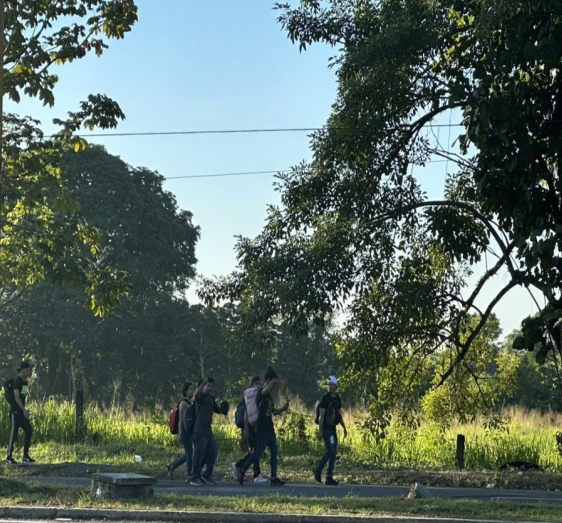 Por otro lado, comenzaron a observarse grupos de migrantes caminando por la carretera costera, un corredor de 300 kilómetros, con la intención de no ser detenidos ni bajados de las combis durante su trayecto hacia otras ciudades. Para muchos, Oaxaca representaba el siguiente objetivo (Porras y Miranda, 2024). No se trataba de caravanas, como las ocurridas en 2018, sino de un formato más parecido al de los llamados “caminantes” (migrantes venezolanos que salían a pie desde Venezuela hacia el sur de América) (Vargas, 2023). Esta estrategia respondía al conocimiento de que, al cruzar ciertos retenes migratorios caminando, las autoridades no los detenían, lo que les permitía avanzar gradualmente hacia la CDMX (Imagen 8).