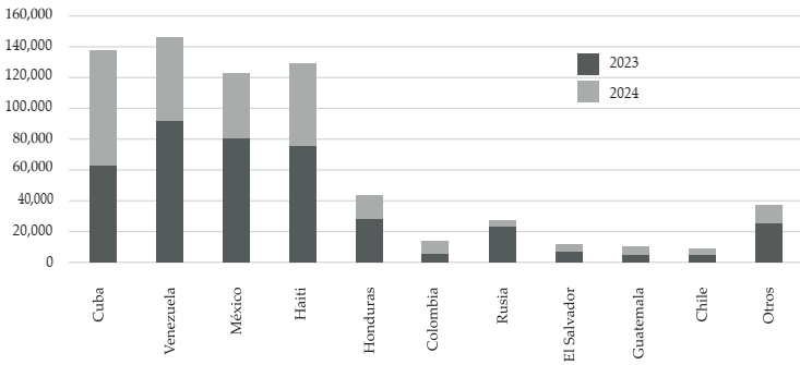 Fuente: Observatorio de Política Migratoria y Derechos Humanos (2024), a partir de estadísticas del Departamento de Seguridad Nacional de EE. UU. (DHS).