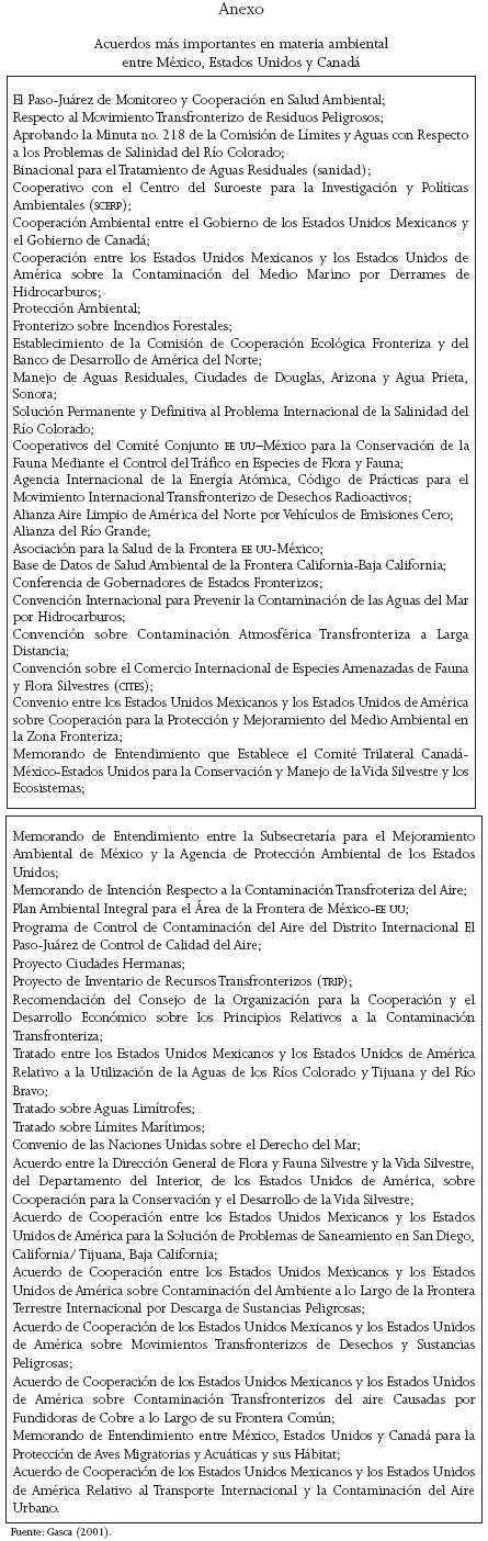 5 Junto con ello, se habían firmado acuerdos binacionales entre México y Estados Unidos sobre infraestructura de agua y residuos (Gasca 2001).