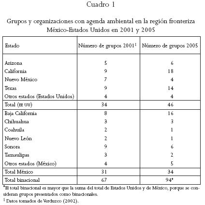 Algunas de ellas son: la Red Fronteriza de Salud y Ambiente, Tijuana Aire Sano (Agrupación Internacional de Respuesta Ecológica y Salud Ambiental del Noroeste), Environmental Committee of the San DiegoTijuana Region, The Binational Health and Environmental Coalition of Ambos Nogales; The International Sonora Desert Aliance; The Texas Center for Policy Studies; The Southwest Organizing Project of Environmental Justice; Concerned Citizens, The Border Power Plant Working Group, entre otras (Verduzco 2002; Liverman et. al 2002).