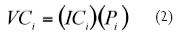 VCi volumen de contaminación emitido por la industria i.