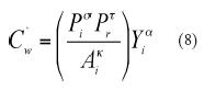A partir de la función de costos descrita arriba, es posible obtener una función de producción que relacione la actividad económica manufacturera con factores de producción y externalidades. Al sustituir (6) en (4) resulta la función de costo: