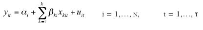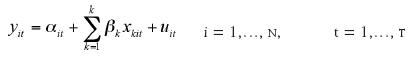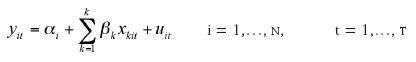 Los modelos de ecuaciones con observaciones de y (indicador de desigualdad), para un vector de características x (indicadores de liberalización económica) se presentan así: