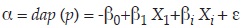 α = dap (p)=-β0+β1Χ1+βiΧi+ε