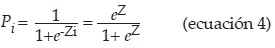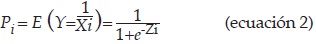 La estimación de la probabilidad de que un hogar esté dispuesto a pagar por mejoras en la calidad ambiental del río Lerma se hace mediante la estimación de un modelo logit. En éste, la variable dependiente (DAP) es dicotómica, y lo que se busca es determinar el impacto de las independientes sobre la probabilidad de aceptar o no el pago. La ecuación 2 puede reescribirse como: