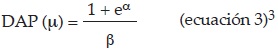 β= DAP (p)= Σ((-14.206+1.19(ENFERMERL) + 2.81(IMPMA) + 0.561(TOTPERSON) + 1.14 (USAINSECT)+))