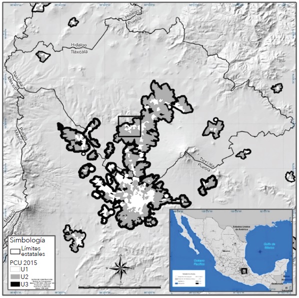 Figura 1 Perímetros de contención urbana (PCU) en Tlaxcala, México, 2015