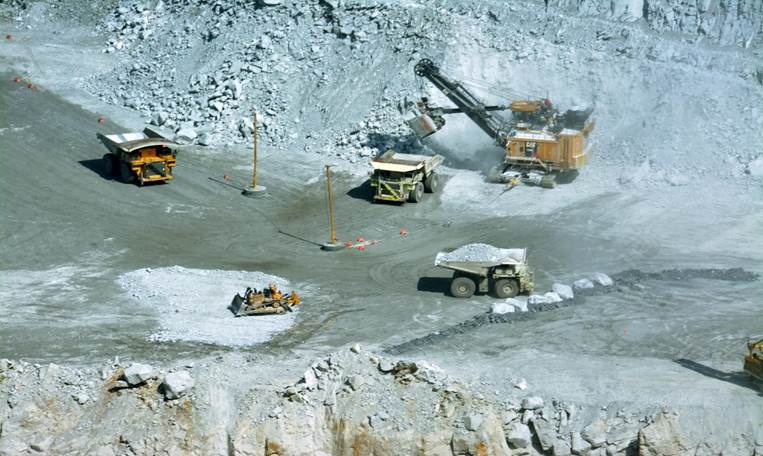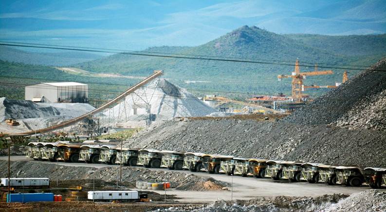 Figura 3 Mina a cielo abierto, el saqueo vigente. Trabajos realizados por maquinaria pesada en la mina Peñasquito, ubicada en Mazapil, Zacatecas