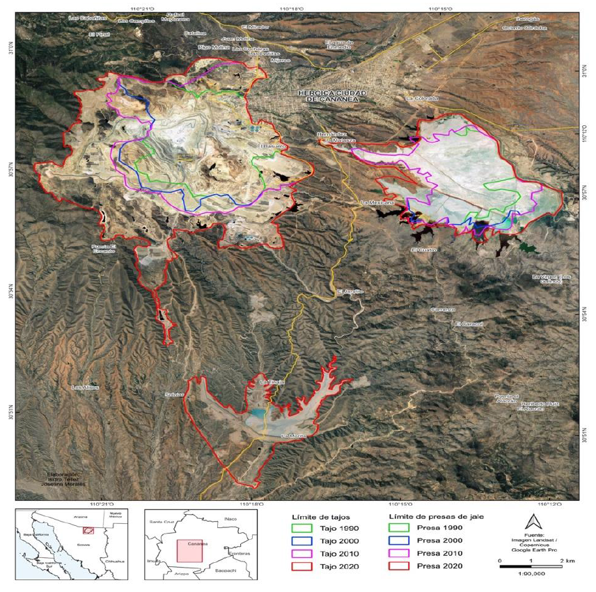 Uno de los conflictos mineros que ejemplifican estos efectos es el registrado en la mina Buenavista del Cobre, antes Cananea. Localizada en el estado de Sonora, este yacimiento supergigante, propiedad del conglomerado Grupo México, fue la primera mina de tajo a cielo abierto en México, iniciando operaciones en 1944. Sin embargo, como se aprecia en la Figura 10, la mayor expansión territorial de esta mina se registró durante la segunda década del siglo XXI, hasta ocupar una superficie vigente aproximada de 8 545 hectáreas, de las cuales los tajos representan 61%.