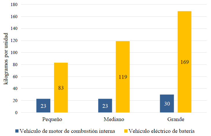 Figura 12 Uso estimado de cobre por vehículo eléctrico, según tamaño de la unidad