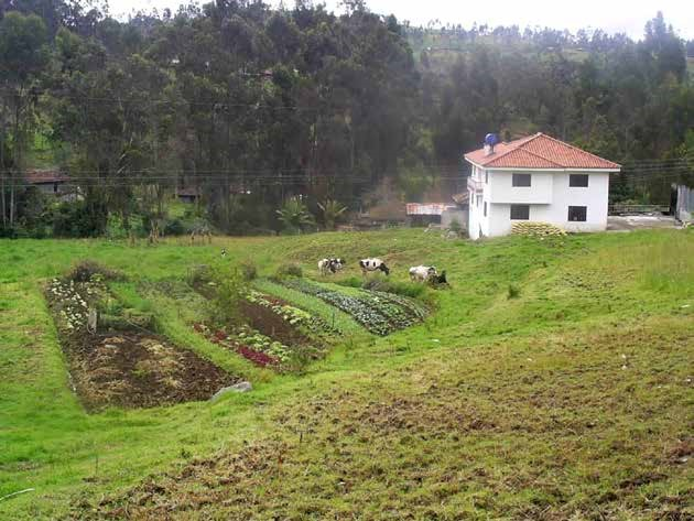 Tras consultar a las familias con migrantes sobre sus lógicas de trabajo obtuvimos respuestas muy claras. Para ellas, el objetivo es vincularse con el mercado urbano de Cuenca para sacar ingresos regulares. En consecuencia, las personas que se quedan, las mujeres en particular, prefieren aumentar por un lado las superficies de pasto para vender leche y criar cuyes, y por otro lado intensificar el trabajo sobre micro huertos para vender hortalizas. Así, desaparecen progresivamente el maíz, el haba, el frijol y los tubérculos. Asistimos, pues, a un cambio profundo en las prácticas agrícolas: las superficies de cultivos de ciclo largo se reducen cada vez más porque no aseguran la supervivencia diaria de los hogares.