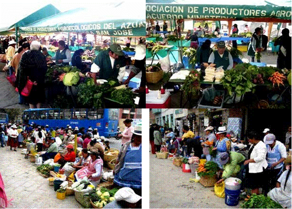 Según los diferentes técnicos que trabajan sobre el tema, la agro-ecología constituye un enfoque muy concreto del desarrollo rural, justamente porque garantiza el acceso de los campesinos al mercado, atribuyéndoles títulos de productores limpios (que trabajan sin químicos). Desde un punto de vista puramente comercial, eso permitió tener desde el inicio un ambiente de confianza con los consumidores, quienes ahora prefieren comprar los productos locales y favorecer la agricultura azuaya. La formación de dos redes regionales de pequeños productores constituyó también un marco institucional muy importante para la inserción urbana y para luchar (oficiosamente) contra la informalidad. Así, entre el campo y la ciudad se desarrollaron nuevas formas de complementariedad que modificaron tanto los espacios urbanos de venta, como la economía campesina.