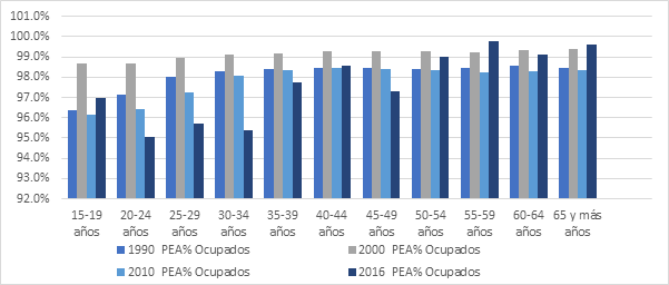 Fuente: Censos de Población y Vivienda 1990-2010 y ENOE 2016.