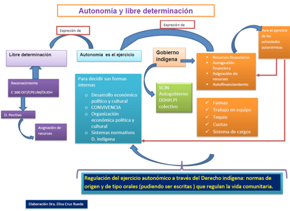 De igual forma, el deber de consultar no presupone que el Estado sea omnipotente y por tanto irrecusable al cumplir con él. Así, el mismo Convenio 169 de la OIT, en conjunto con la Declaración de las Naciones Unidas sobre los Derechos de los Pueblos Indígenas, establece condiciones para considerar su debida realización. De esta suerte, el Estado mexicano y sus instituciones primero deben cumplir con el establecimiento de los medios para el pleno desarrollo de las instituciones e iniciativas de esos pueblos y, por tanto, proporcionar los recursos necesarios para tal fin. Esas instituciones justamente son a su vez ámbitos autonómicos que posibilitan el ejercicio de la libre determinación (véase esquema 1).
