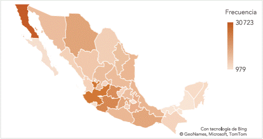 En los hogares mexicanos se han presentado cambios importantes en las poblaciones retornadas y en la cantidad de hogares2 que contaban con al menos una persona migrante retornada. Gandini, Lozano y Gaspar (2014), con cifras censales de 2000 y 2010, reportaron que, en 2000, en el país existían 200 790 hogares con al menos una persona migrante retornada del extranjero, mientras que en 2010 fueron 654 877. En el año 2020, las cifras censales reflejan 295 267 hogares de estas características distribuidos en todo el territorio nacional, tal como se muestra en el Mapa 1. Las entidades donde se encontraban la mayoría de estos hogares fueron: Baja California, Jalisco, Michoacán y Guanajuato, estados que históricamente se han caracterizado por intensas corrientes migratorias (véase Mapa 1).