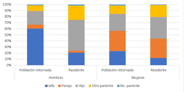| Nuclear (familiar) Ampliado | Hombres Mujeres Hombres Mujeres | Retornados | 75.7 % | 19.4 % | 50.4 % |