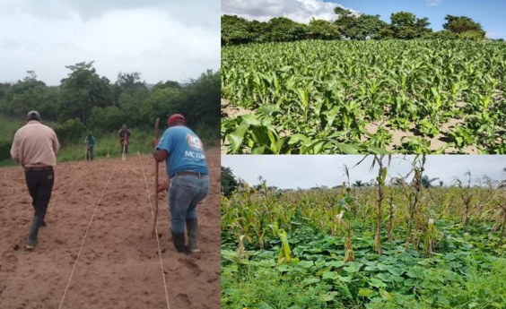 En seis parcelas se observó el uso del surcado con yunta mediante el empleo de una cultivadora de cuatro punzones y una golondrina. Esta técnica permite delinear el ancho de las filas para la siembra del maíz y establecer una distancia entre surcos que facilita las posteriores labores de deshierbe con la misma yunta. Este método refleja un conocimiento práctico sobre el manejo del espacio y la optimización del trabajo. Tras la creación de los surcos, la siembra se realiza con una mezcla de semillas, utilizando un sembrador y una «macana» de madera que ayuda a penetrar el suelo para depositar las semillas a la profundidad necesaria, alrededor de cinco centímetros. Solo en una porción de la parcela Las Moradas se empleó una sembradora mecánica para el cultivo del frijol.