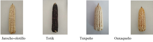 La raza tuxpeño es un maíz originario de las zonas tropicales de México que ha sido la base genética para el desarrollo de maíces híbridos y otras VPA (Pizaña, Caballero y González, 2025). Está clasificado dentro del grupo de razas dentado-tropicales. Sus mazorcas son cilíndricas, con un olote blanco que tiene entre 12 y 18 hileras de granos de color blanco cremoso. Se cultiva a alturas que van desde los 530 hasta los 1 350 metros sobre el nivel del mar (Guevara et al., 2021). Antonio llevaba utilizando el tuxpeño dos ciclos agrícolas y en la ocasión estudiada lo cultivó en Alto del Susto 2. El oaxaqueño es una población de la raza tuxpeño; su mazorca es mediana, ancha y amarillenta, y se denomina así porque proviene de Oaxaca, estado que colinda con Cintalapa.