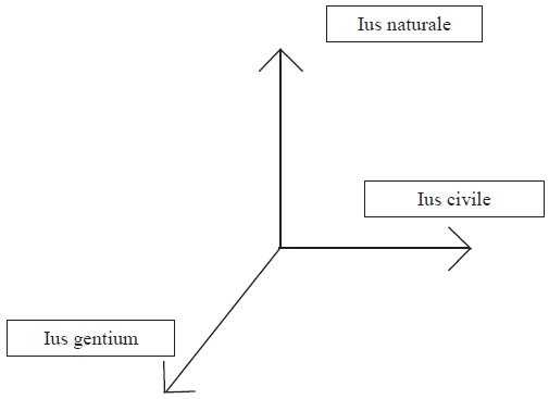 Este derecho natural, se basaba en la evolución de lo particular (ius civile), pasando por el ius gentium hasta constituir la percepción filosófica de que existía un derecho que contenía ideas legales básicas y comunes a todos los pueblos. Vogel cita la definición de Gayo:
