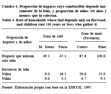 En Pavencul los niños contribuyen a la economía del hogar: acarrean agua, recolectan leña, única fuente de energía (Cuadro 4).