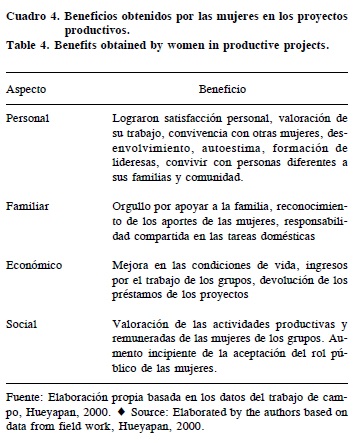 Beneficios obtenidos por las mujeres en los proyectos productivos