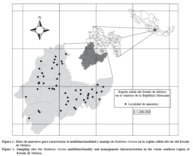 Chapulixtle (Dodonae viscosa) is a cosmopolitan plant that grows and develops in diverse geographical and environmental conditions. It predominates in deciduous and evergreen tropical forests, associated to mesophylic vegetation, shrubs and live oak forests, but also in secondary communities (successive stages of forest and brush, grassland, abandoned fields and ruderal spaces), and even in areas with extreme deterioration such as current borders, ravines, spaces exposed to sunlight, hills, slopes, spaces with over-grazing, eroded soils, and areas affected by fire. Dodonae viscosa is a multifunctional plant, used by peasant families in the warm region of southern Estado de México. In order to demonstrate its importance and multifunctionality, 1000 surveys were applied. As verification strategies, and to document its presence, a global geo-positioning system (GPS) was used. Tours around environments and communities in the region were carried out, where direct and participant observation was performed, interpreted with the approach of cultural geography. This plant has contributed significantly to peasant families' economies, thanks to its diverse uses, such as: medicinal, fuel, ornamental, pesticide, for construction, agriculture, agro-forestry, ecological, environmental and for aquifer recharge.