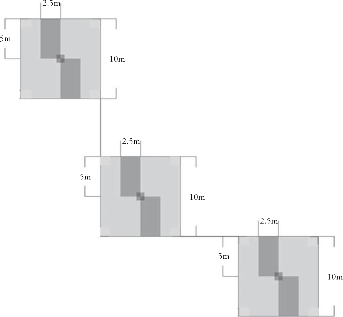 Figure 2 Quadrants and subunits of sampling in the tree and scrub vegetation structure.