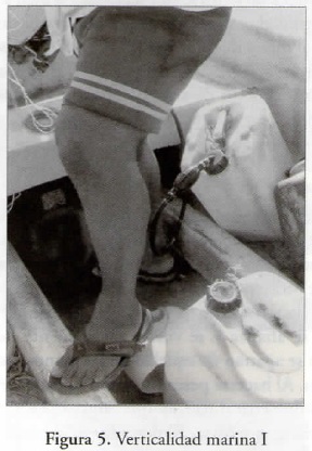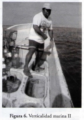 Una de las maneras que tiene el ser humano de llegar a serlo, en efecto, es actualizando su potencialidad de criatura bípeda. De nuestra primera conquista de verticalidad no solemos acordarnos. Un día, tras múltiples intentos, con trabajo y temblor, con la ayuda de otras manos o bien de artefactos que nos rodean, izamos la cabeza y exploramos la tierra firme desde un frágil primer equilibrio pedestre. Ene con el tiempo se afianza y se vuelve tanto fuente de diferenciación (las funciones de los pies se apartan de aquellas de las manos, por ejemplo) como de correlativa distinción. Al hacerse pescador como su padre, el hijo ha de conquistar un segundo tipo de verticalidad, la que consiste en conservar el equilibrio parado en una superficie movediza. El pescador es el bípedo capaz de permanecer erguido a pesar de que sus pies pisan una superficie en movimiento (su lancha), la cual a su vez descansa sobre una superficie que también es volumen. El dinamismo de ésta no siempre es predecible y además es capaz de abrirse para hundir y destruir estructuras producidas por los seres humanos (lanchas y pescadores, entre otras). El pescador es el ser que cada día camina hacia la orilla del mar (primer sentido de verticalidad) para luego subirse a un espacio pequeño y desde ahí, hasta cierto punto, "perforar una realidad"17 sobre la cual él se mantendrá en equilibrio mediante otro tipo de postura y de tensiones musculares, otra sucesión de movimientos, otra manera completamente diferente de pararse en el mundo (segundo sentido de verticalidad):