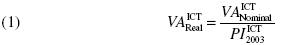 Economic variables are usually reported in nominal or in real terms. According to standard statistical practice, in order to translate from nominal to real magnitudes (or vice versa), one should use a price index. For example, to calculate the real value added of the ICT sector we would proceed in the following manner.
