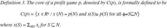 By an n-person cooperative game in characteristic function form (or a TU cooperative game), in what follows just a game, we mean a pair (N, v), where N = {1, ..., n} is a finite set of players and v is a function v: 2N → R with the property that v: (Φ) = 0 (2N denotes the set of subsets of N). We usually refer to subsets S of N as coalitions and to the number v (S) as the worth of S.