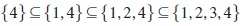 By Lemma 1, vE,d ({4})≤ vE,d ({1,4})≤ vE,d ({1,2,4})≤ vE,d ({1,2,3,4}). The worths are 0 ≤ 1 ≤ 5 ≤ 10 and the corresponding marginal contributions satisfy 1 ≥ 4 ≥ 5, which are increasing.
