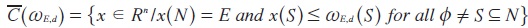 Example 4. Let (E, d) be a bankruptcy problem given in Example 1. The alternative game associated to (E, d), ωE,d, is defined as