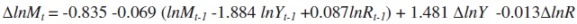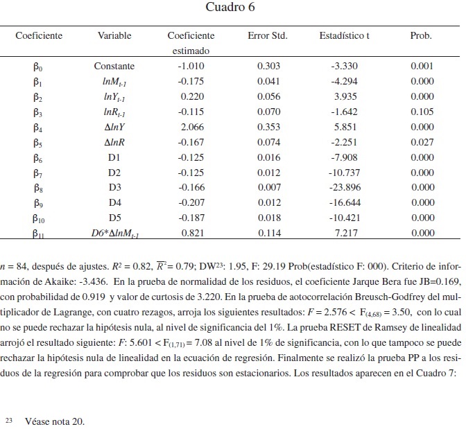 De acuerdo con la ecuación 4, la función de demanda de largo plazo para México estaría especificada así: