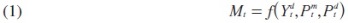 Donde M,, es la cantidad demandada de importaciones. Ydt, es el ingreso nacional. Pmt es el nivel de precios de las importaciones yPdt es el precio de los bienes nacionales.
