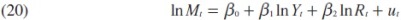 Donde ln es el logaritmo natural y ut es el término de error. De la teoría económica se espera que β1 > 0 y β2 < 0 pero, como se discutió antes, β1 puede ser negativo.