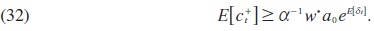 This indicates that, in the absence of contingent-claims markets, the devaluation risk has an effect on wealth via the uncertainty in δt, that is, uncertainty changes the opportunity set faced by the consumer. On the other hand, the devaluation risk also affects the composition of portfolio shares via its effects on w+. Thus, a policy change will be accompanied by both wealth and substitution effects. We cannot determine the level of consumption in our stochastic framework. We can only compute the probability that, at a given time, a certain level of consumption occurs. Notice, however, that by Jensen's inequality, mean consumption satisfies: