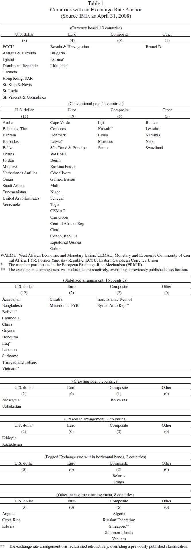 Between 1900 and 2000, emerging economies managing a fixed exchange-rate, a fixed rate of devaluation, an adjustable band or a convertibility plan, like Brazil, Ecuador, Thailand, Korea, Indonesia, Russia, Bosnia, Turkey, among others, had a major financial crisis. These regimes have simply not proved viable over time, especially for countries integrated or integrating into international capital markets. In most cases, the public in these countries anticipated that the stabilization plan was going to be temporary, resulting in a large expansion of consumption of durable goods and an extreme devaluation. Surprisingly, in 2008, as of April 31, according to the IMF, at least 88 of the world countries have one of the above exchange-rate regimes, as it is shown below in Table 1. The lessons, from these episodes, that should be taken into account by policymakers when devising a corrective devaluation, especially if financial markets are incomplete, is that public expectations and consumption dynamics generated by exchange-rate-based stabilization plans may increase imports producing unsustainable deficit in the current account of the balance of payments.