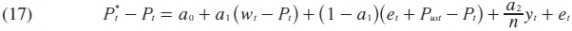 Donde w-P es el logaritmo del salario real y et+Pust-Pt es el logaritmo del tipo de cambio real. n es el número de empresas de la economía y la variable "y" es el exceso de demanda de la economía.