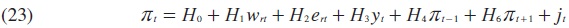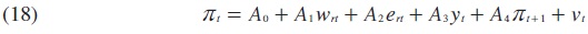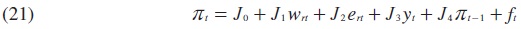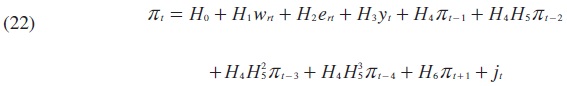 En lo que se refiere a la versión híbrida de la curva de Phillips, la sustitución de (17) y (19) en (16) da por resultado: