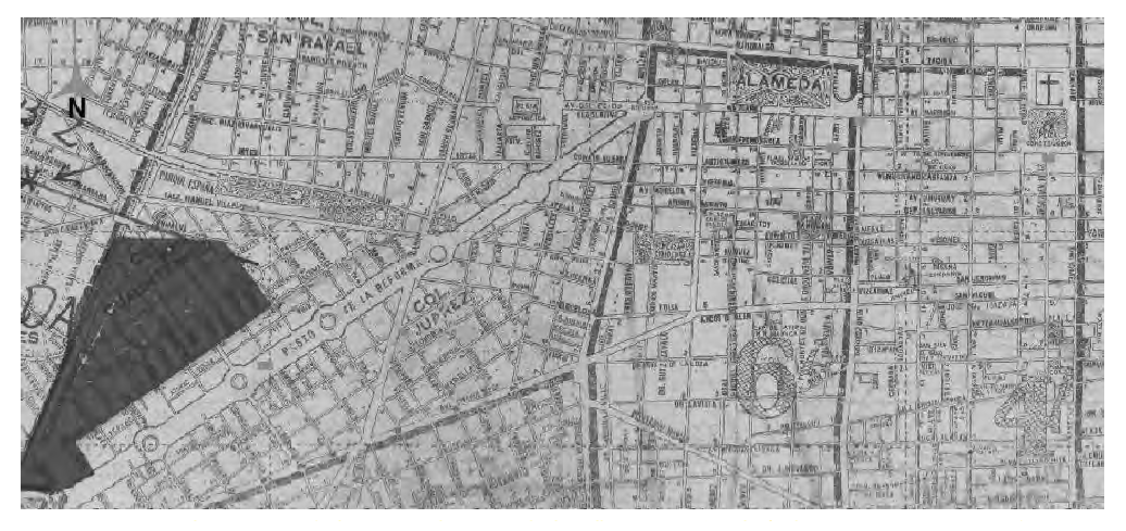 Ese día, desde horas de la mañana se convocó a un paro laboral y los trabajadores pudieron asistir al desfile programado en la Plaza de la Constitución.34 A pesar del orden que habitualmente tenían las marchas revolucionarias en la capital, en esta ocasión hombres, mujeres y niños marcharon desde varios puntos del centro capitalino para escuchar a sus líderes y lanzar odas al presidente y su política. Entre los puntos se encontraba la avenida San Juan de Letrán, avenida Francisco I. Madero, cercanías al Monumento de la Independencia en Paseo de la Reforma, avenida Juárez35 y avenida 20 de noviembre, inaugurada ese mismo día luego de dos años de construcción, y que no gozó de ninguna ceremonia rimbombante36 (Ver mapa 1).
