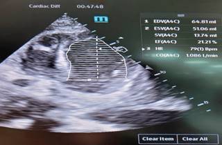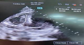 Figura 3: Evaluación de función sistólica del ventrículo derecho, con medición de fracción de acortamiento.