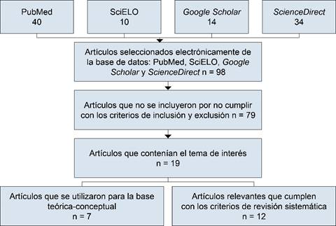Inicialmente se encontraron 98 artículos, se eliminaron 79, quedando 19 con los criterios de búsqueda, como se muestra en el algoritmo PRISMA en la Figura 1. En la Tabla 2 se presentan las principales características de los estudios incluidos y en la Tabla 3 se detallan los hallazgos, importancia, fortalezas y debilidades.